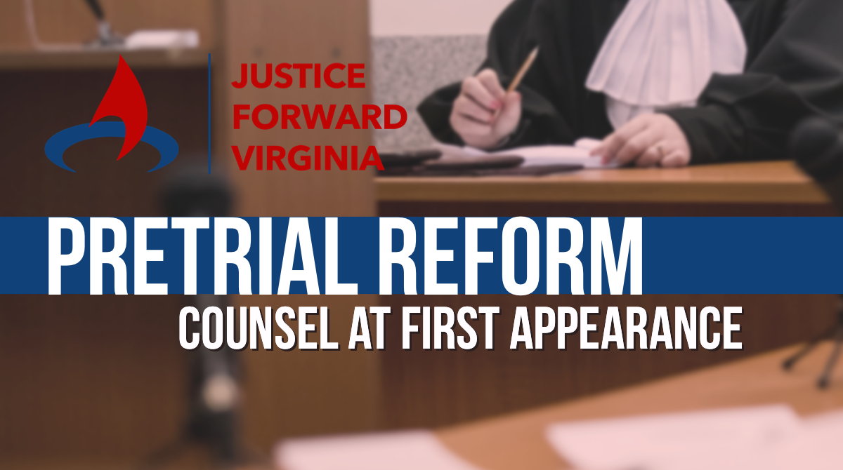 Shortening each of these phases with the goal of getting people who are not flight risks or a threat to themselves or others out of pretrial detention as quickly as possible will go a long way toward making Virginia’s criminal legal system more fair. It will prevent many people’s lives – people who are presumed innocent – from being upended. This is where a change to a Counsel at First Appearance policy change will have an impact.